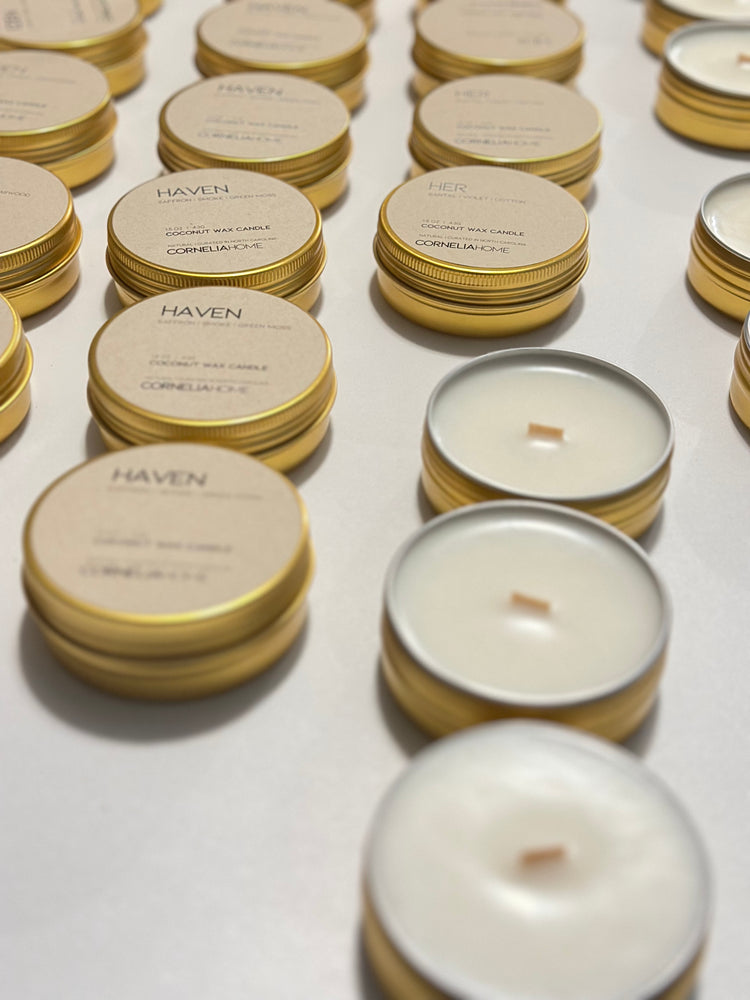 Our candles are hand-poured and curated with natural coconut wax, unique fragrance and essential oil blends for a clean burn. We use crackling wooden wicks to give you an eco-friendly wood burning experience. Our products are free of phthalates, parabens, petroleum and dyes.